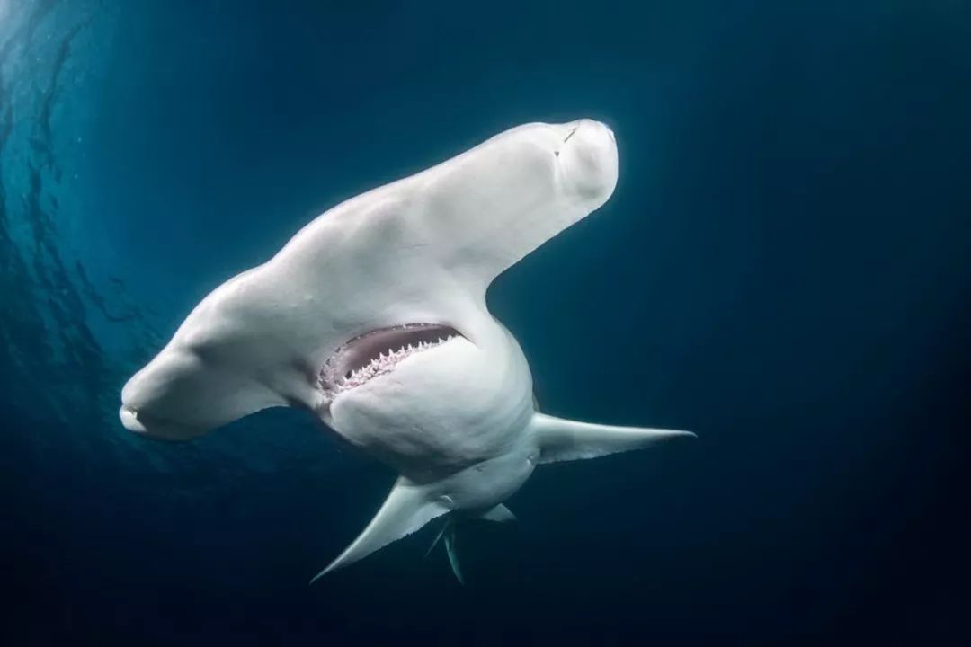 △双髻鲨的X光照。当双髻鲨在水里摇头晃脑的时候,它鼻孔中的水流量就会增加,这可以帮助它对气味进行定位。