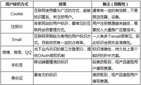 以上列举了互联网主要的用户标识方法,获取方式由易到难。视企业的用户粘性,可以获取的标识信息有所差异。
