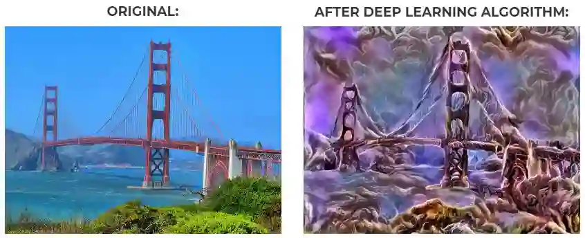 左边是初始的图像,右边是梦魇机器经算法转换后的图像。