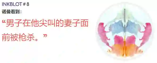 他精心制作了 10 张毫无意义的抽象墨迹图,给被试者看,并让他们说出看到之后联想到的东西。