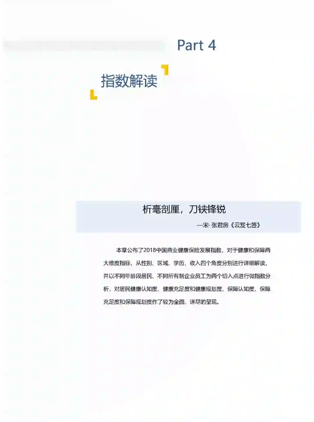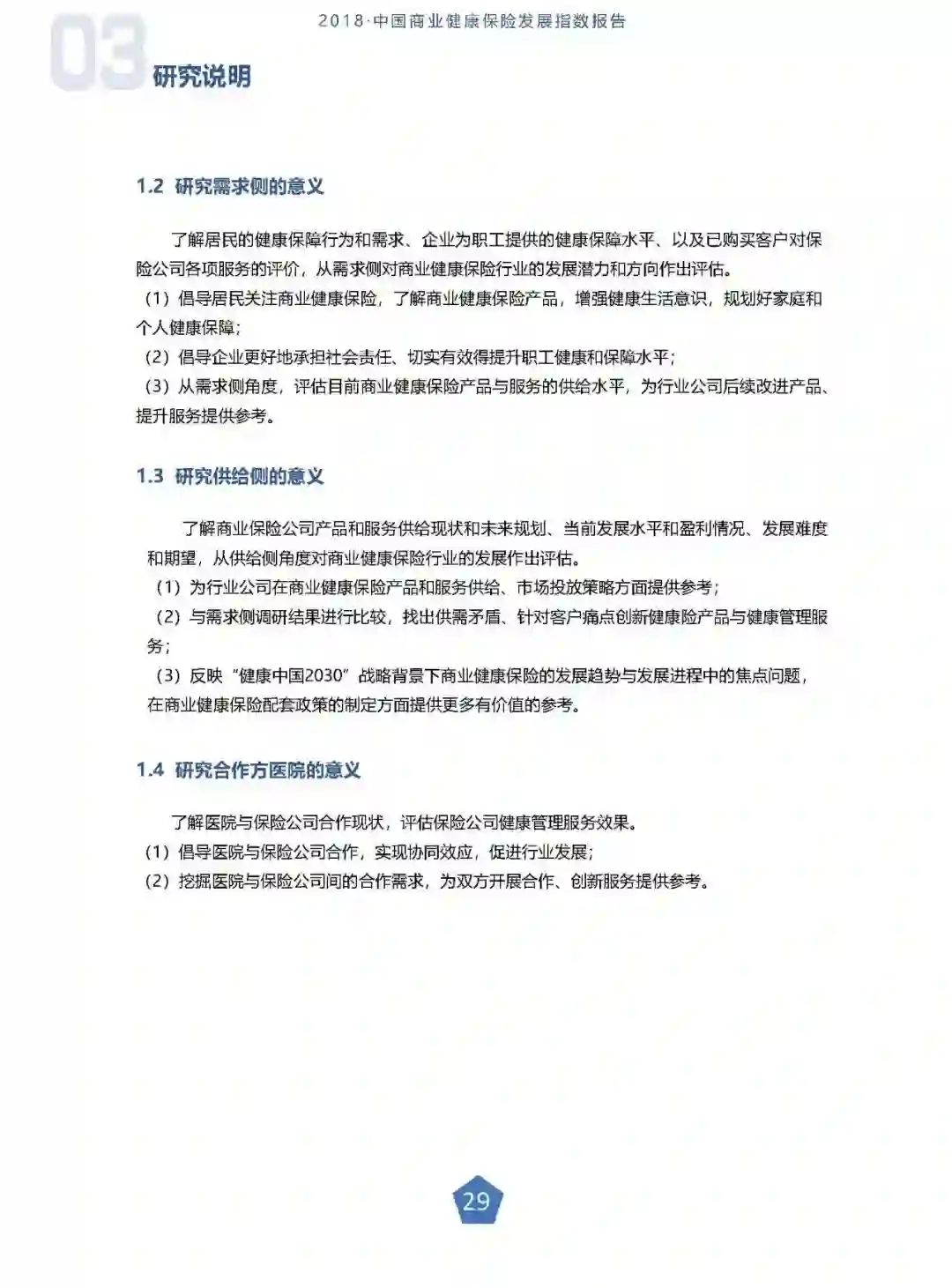 三是指数样本调研更充分。通过知名研究咨询机构零点有数和中国保险行业协会大学生责任行团队共同协作,本报告扩大了大中城市居民样本数量,进一步提升需求侧指数结果的准确性与代表性,并增加了供给侧、合作方医院以及舆情等更多元的数据来源。