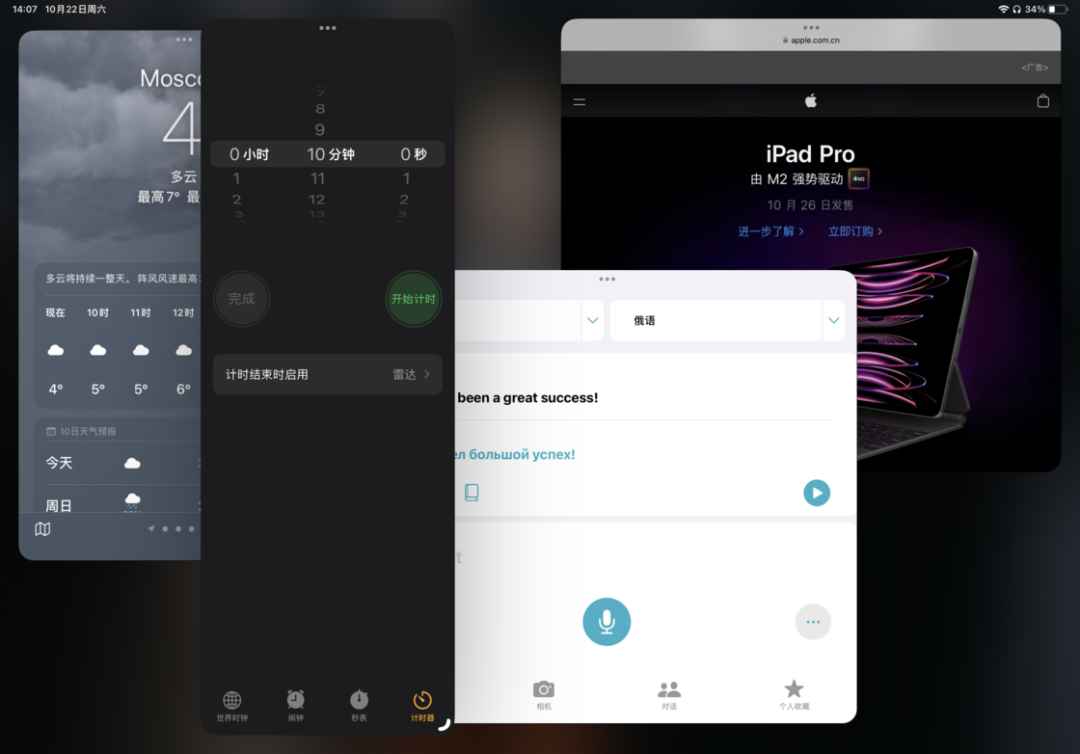 在 iPadOS 16.1 的控制中心菜单里,默认会添加台前调度功能的开关。打开开关后,iPadOS 的多任务处理功能就从 iPadOS 15 的「侧拉」「分屏浏览」等模式,转变到了「台前调度」的模式。此外,在今年稍后推出的更新中,「台前调度」还将支持完整的外接显示器功能,最多可同时在 iPadOS 的前台运行 8 个 app。