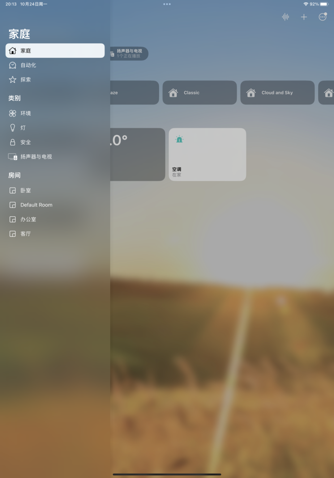 「家庭」app 也经过了重新设计。以往需要分不同房间进行配件控制,但是如今只需要在一个统一的「家庭」标签页中就可以一览所有的 HomeKit 配件。同时,还推出了「类别」功能,可以一键筛选类别相同的 HomeKit 配件,比如灯泡、扬声器等。此外,「家庭」app 新增了一些渐变色壁纸可以作为背景使用。不过需要注意的是,升级到 iPadOS 16.1 的 iPad 不能再用做家庭中枢。新的「家庭」App 也提供了 Matter 支持,但需要一个支持 Matter 的家庭中枢,例如 Apple TV 或者 HomePod。