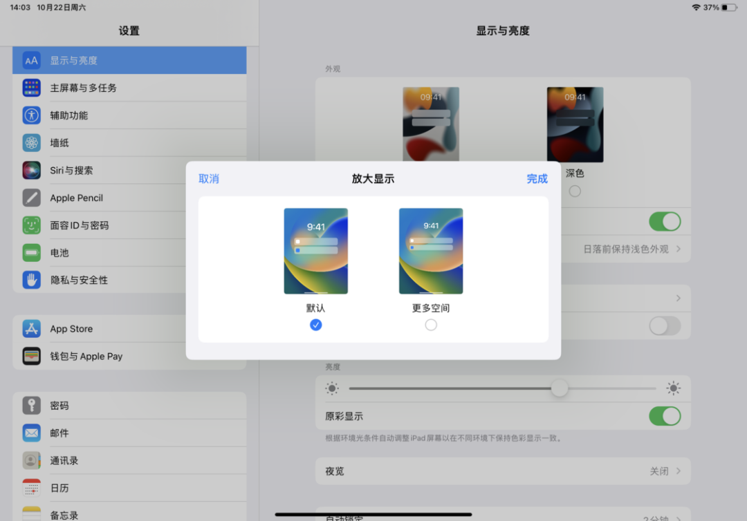 中。经过测试,11 英寸 iPad Pro 在调整为「更多空间」后,屏幕分辨率变为 2778 * 1940,之前是 2388 * 1668。在「更多空间」效果下,文字和图像的显示都会相应变小,同一屏幕可以显示的内容更多。