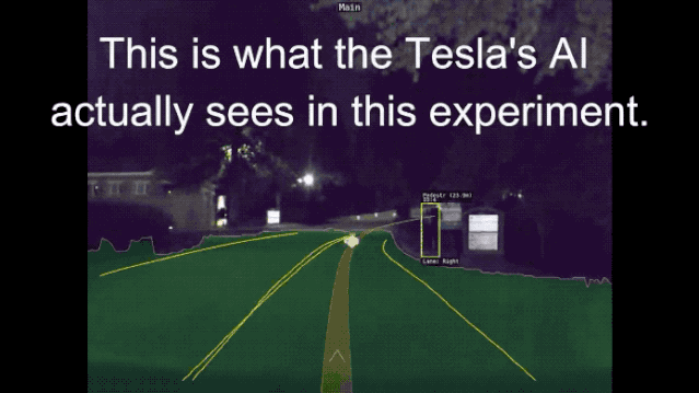 然后搭载HW2.5的特斯拉,就把图像检测成了「人」,车速从18英里/小时,降到了14英里/小时。