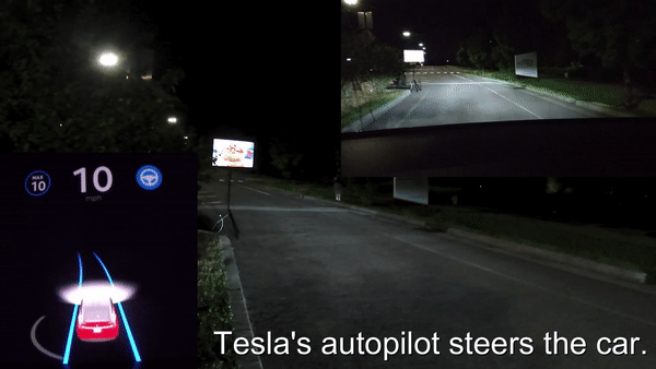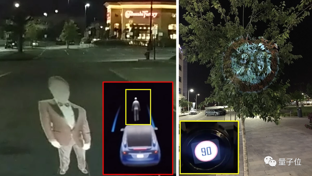 今年早些时候,他们便用投影技术,在夜间的道路和路边的树上,投影出人和路标等图像,成功「忽悠」了搭载HW2.5的特斯拉Model X和搭载Mobileye 630设备的车辆。