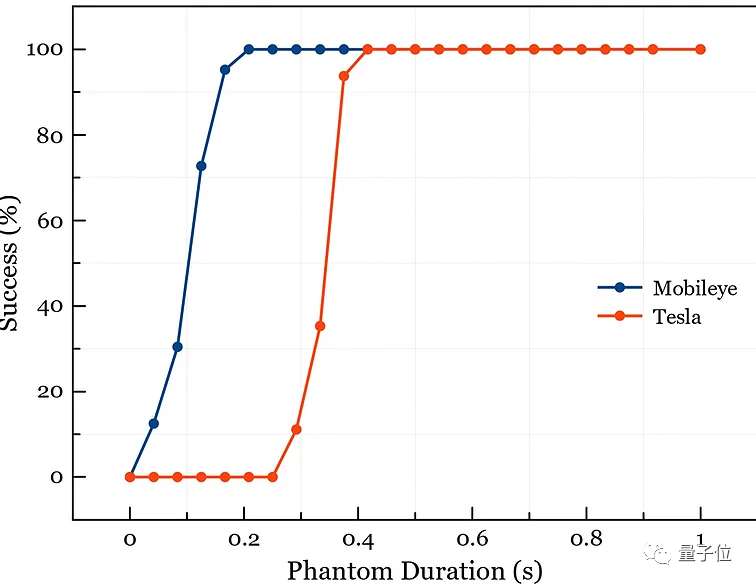 这些干扰信息的持续时间不用很长,只需要几百毫秒的时间,就足以让号称最先进的特斯拉Autopilot作出错误反应。