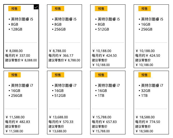 -i5+8GB+128GB 版本售价 8088 元,i7+32GB+1TB 版本售价 18588 元,均不包含键盘盖和手写笔。