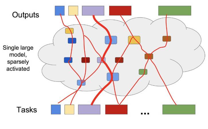最后,Jeff Dean 总结说,未来人工智能的发展可能需要结合以上介绍的所有思路:需要大型、但稀疏激活的模型;需要解决多种任务的单个模型;大型模型的动态学习和成长路径;面向机器学习超级计算的特定硬件,以及高效匹配这种硬件的机器学习方法。