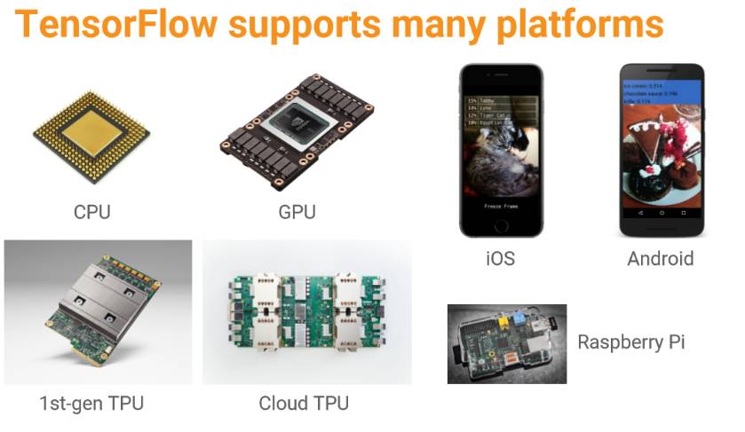 在 TensorFlow 中,一个模型可能只需要一点点修改就能在 CPU、GPU 或 TPU 上运行。前面我们已经看到 TPU 的强大之处,Jeff Dean 表明,对于从事开放性机器学习研究的科学家,谷歌可以免费提供 1000 块云 TPU 来支持他们的研究。Jeff Dean 说:「我们很高兴研究者能在更强劲的计算力下进行更杰出的研究」
