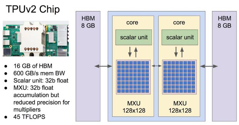 每秒的浮点运算是 180 teraflops,64 GB 的 HBM 存储,2400 GB/S 的存储带宽