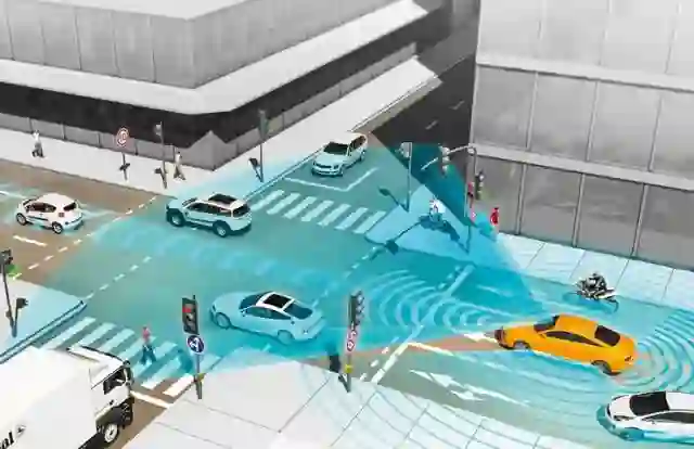 车辆主动探测行驶周边环境,对道路行人、车辆状态实时监测,发现潜在碰撞危险,及时预警;