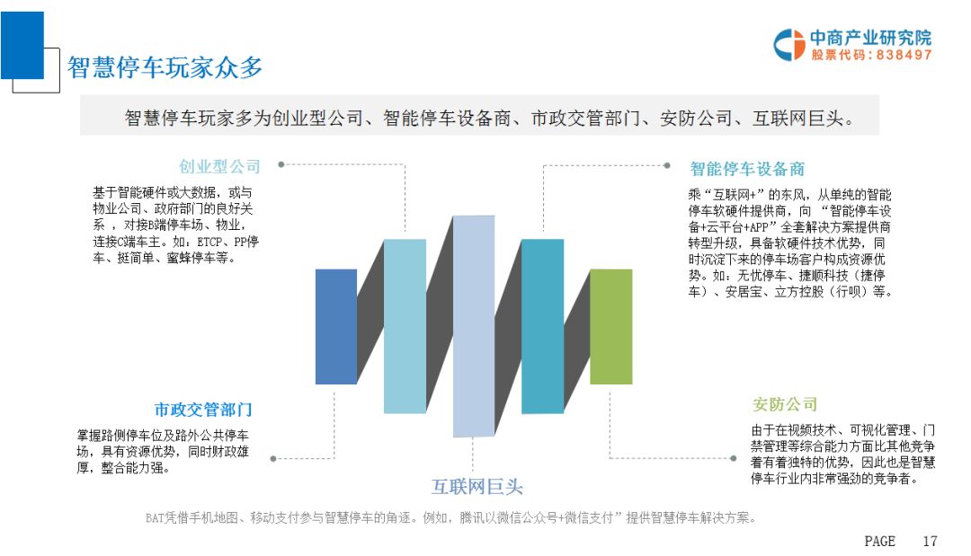 为了让更多的读者了解智慧停车行业发展情况,中商产业研究院特发布《2019年中国智慧停车市场前景研究报告》。报告介绍了智慧停车概况、智慧停车行业背景、智慧停车行业现状、智慧停车重点企业,并对预测了智慧停车发展趋势。报告最后附录智慧停车企业名录。以下是报告详情: