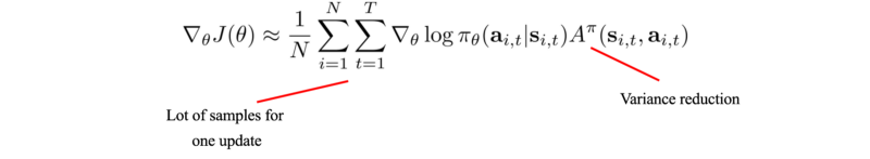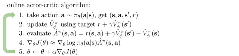 在Actor-critic方法中,我们使用actor来简历策略和评价模型V。通过引入一个评价,我们较少了为每次策略更新收集的样本数量。并且直到一次迭代的结束时才搜集所有的样本。