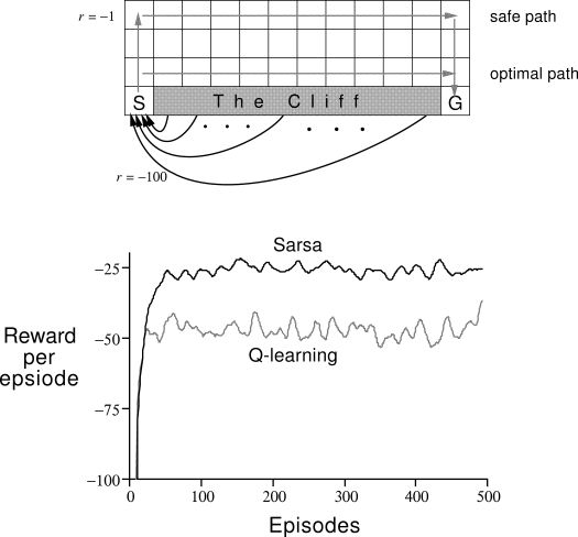 强化学习的概念已经存在一段时间了,但算法的适应性不强,无法完成连续的任务。下面是Richard Sutton的书中的一个经典的示例。