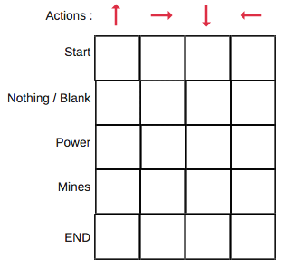 首先,必须构建一个Q表。有n列m行,其中n表示动作数,m表示状态数。所有值均从0开始。