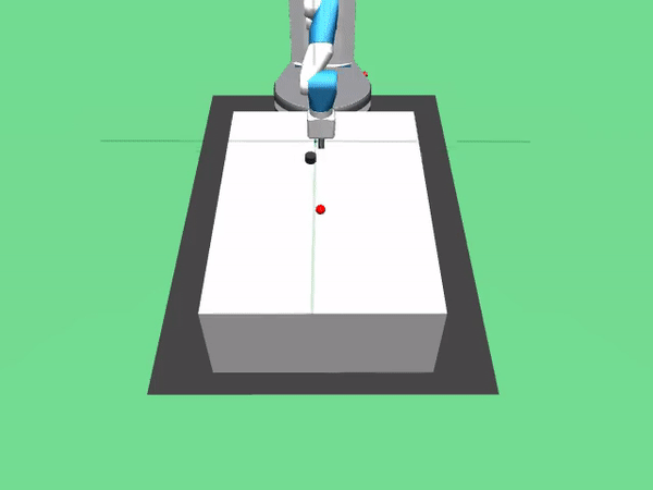 2. FetchSlide-v0:在长桌上击打冰球,使其滑向设定好的目标点,目标点每次都会改变。