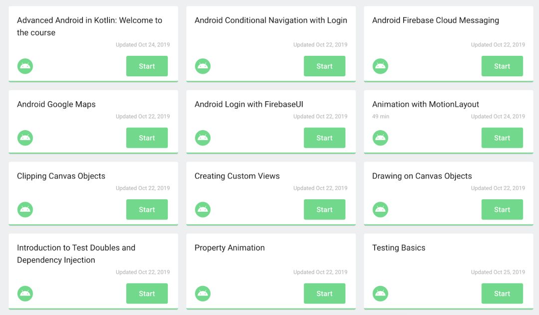 我们还为各位开发者们准备了一系列新的 Codelabs,组成了一个 "使用 Kotlin 进行 Android 进阶开发" 的课程。这一系列的 Codelabs 安排与教学课程类似,相比较全部由讲师主导课程,我们希望可以让开发者们自行决定学习进度,并在这个基础上与视频教学内容配合学习。无论您是喜欢通过阅读和代码实验来自行解决问题,还是倾向于在讲师的帮助下了解代码,我们都可以满足您的需求。您只需要: 选好方向,开始学习!