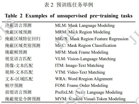 视觉和语言在人类学习视觉实体与抽象概念的 过程中扮演着重要的角色,本文对视觉语言多模态 预训练领域自 2019 年以来的模型与方法,基于视觉 来源从图像-文本与视频-文本两大方向进行综述, 并进一步基于模型结构分别介绍各具体模型的特点 与研究贡献。此外,还介绍了常用视觉语言多模态 预训练模型数据集、预训练任务设定以及各模型在 主要下游任务上的表现。 最后对该领域的问题与挑 战进行了总结并提出未来研究方向。希望通过本文 让读者了解当前工作的前沿,以启发进而做出更有 价值的多模态预训练工作。