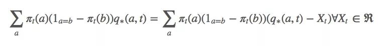 这个等式表示的是无论何时,如果我们选择动作a,我们获得的实际回报就应该等于动作a的预期回报。