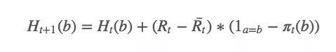 设动作偏好为Ht(a),它和回报无关,只是一个动作相对于另一个动作的重要性。那么At应该符合gibbs分布(也就是机器学习的softmax分布):