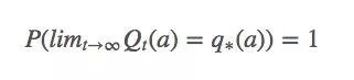 换句话说,它意味着Qt(a)必须收敛于q∗(a):