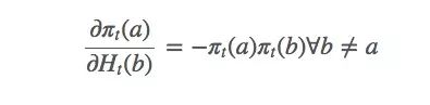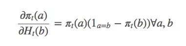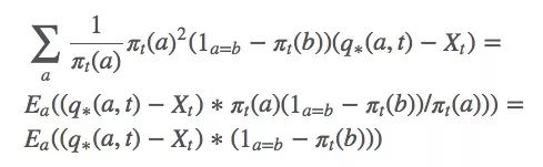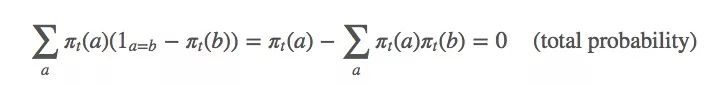 这只是整个梯度的一个偏导数。那么b≠a的动作呢?下面是省略计算过程的结果: