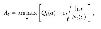每选一次a,不确定项就会减少,分母Nt(a)增加;另一方面,每一次选择了a以外的行为,t会增加但Nt(a)不会改变,不确定评估值会增加。