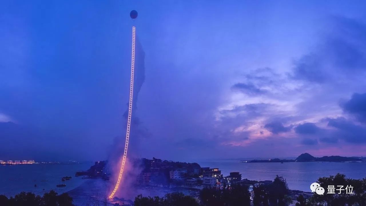 当然,蔡国强两年来影响很大的还有名为“天梯”的艺术表演,而且值得一提的是,这是一次在家乡泉州完成的艺术表演。蔡国强在纪录片中动情地说:我走遍了全世界,却没想到回到故乡才完成这幅作品。