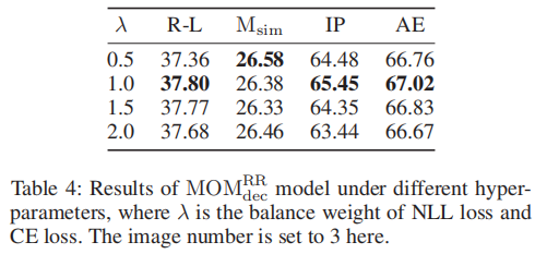 同时,本论文也对比了不同的图片选择损失函数权重对于模型性能的影响,可以看到当图片和文本的损失函数的权重都相同时,图文摘要的质量是最好的。
