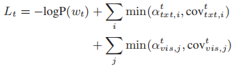 可以通过两种方式显示文本信息:(1)文本编码器的最后一个隐藏状态;或(2)摘要解码器的最后隐藏状态。为了将两个向量投影到一个联合语义空间中,论文使用两个具有ReLU激活功能的多层感知器将文本向量和视觉向量转换为Itxt和Ivis。图象和文本信息之间的相关性可以表示为: