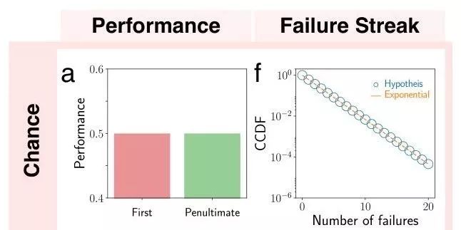 但是,当研究者用以上两种假说去表述先前提到的三个数据集中的真实案例数据时,研究者发现,实际的失败曲线的尾部比指数图像的尾部还要宽一些。显然,单一的运气和学习模型都无法解释人为何会成功和失败。或许,是这二者共同作用才造就了最后的结果。