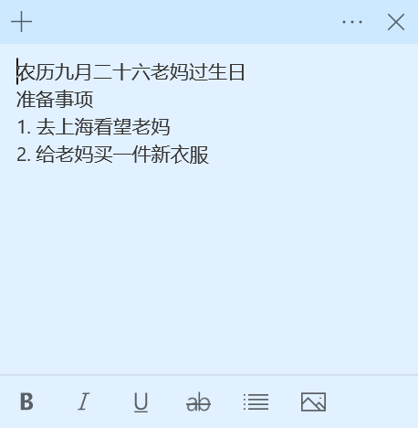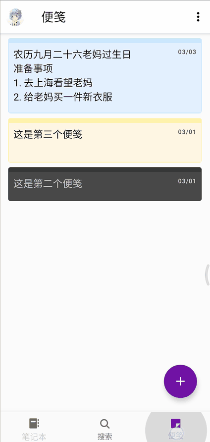 便笺是对 OneNote 的重要补充,定位于「零碎记事」。虽然它自 Windows Vista 以来便一直存在于 Windows 系统中,但其因为「功能单一且缺乏云同步」的原因无人问津。但后来便笺开始频繁更新,功能日趋完善,并被整合到移动端的 OneNote 与三合一的 Office app 中。在移动端,你可以于 OneNote 最右边一栏直接添加便笺,并在 Windows 端的便笺 App 中查看(macOS 用户请移步 网页端)。便笺支持一些简单的样式,例如列表、加粗斜体等字体样式,也可以插入图片。便笺支持的样式创建便笺时,你可以选择自己喜欢的颜色,创建完成后也可以在 OneNote 移动端根据颜色进行筛选。 按颜色筛选便笺打通了移动端和 PC 端的便笺对于我这样经常使用 Windows 和安卓的用户来说非常实用,我一般就用它来记一些无需存档的琐事,例如「记得充饭卡」或者一个想要稍后看的视频链接,用完就删掉。此外,我还常常将便笺当作手机和电脑之间的文字传输工具,同步速度很快。