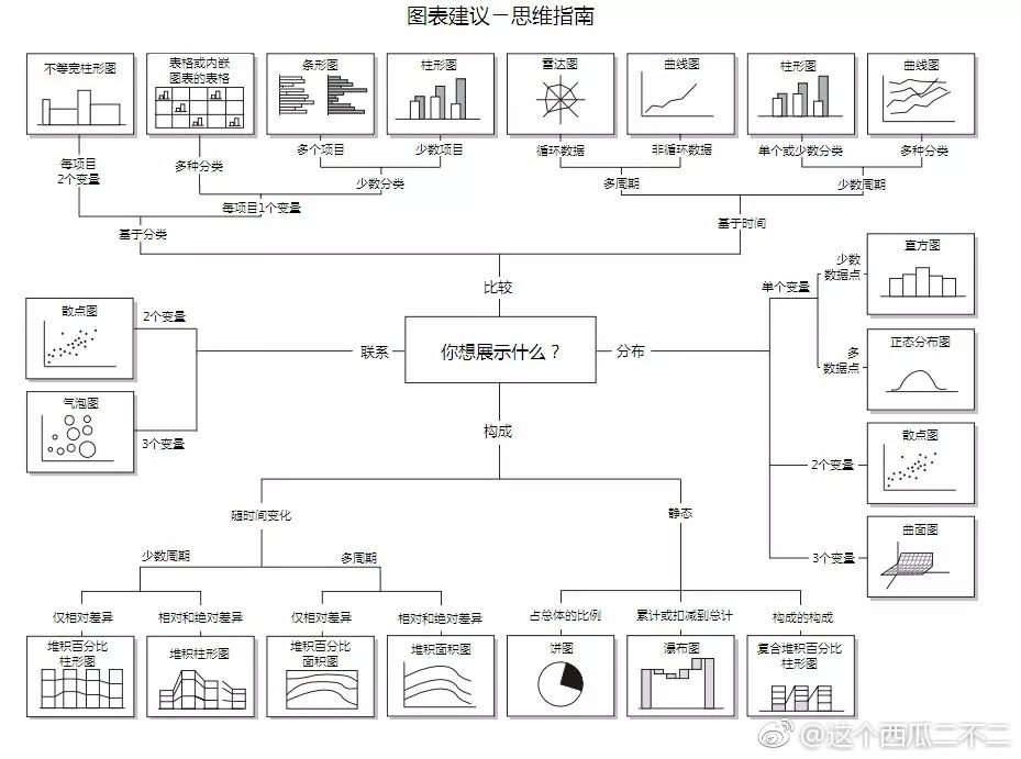 1、Andrew Abela整理的图表类型选择指南图示,将图表展示的关系分为四类 :