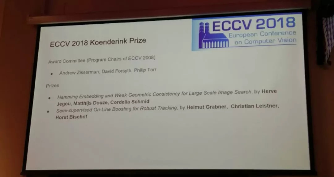 除了最佳论文,ECCV 2018 还颁布了 Everingham 奖、Koenderink 奖两大奖项。前者是为了纪念 Mark Everingham,后者是为了奖励经得起时间考验的计算机视觉基础研究。
