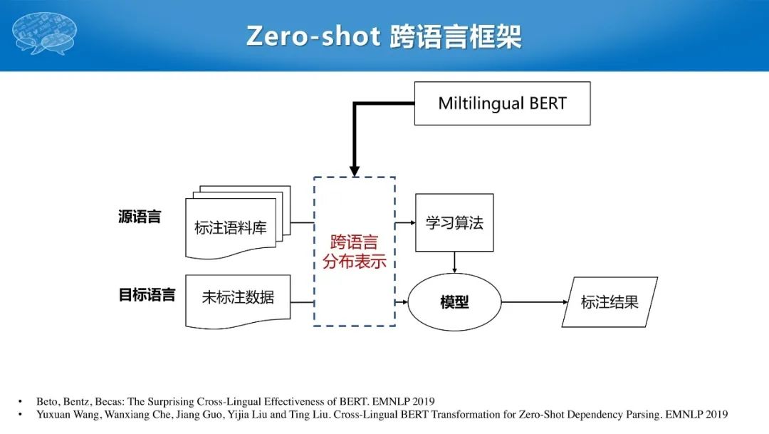 跨语言迁移是指,在语料充分的源语言上训练了一个模型,然后针对目标语言直接用之前训练好的模型进行标注,而不需要目标语言的标注数据。