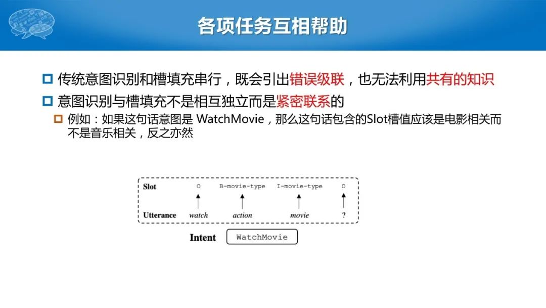对话系统中自然语言理解这部分包括领域识别、意图识别、语义槽填充的任务,三者不能同时进行学习。