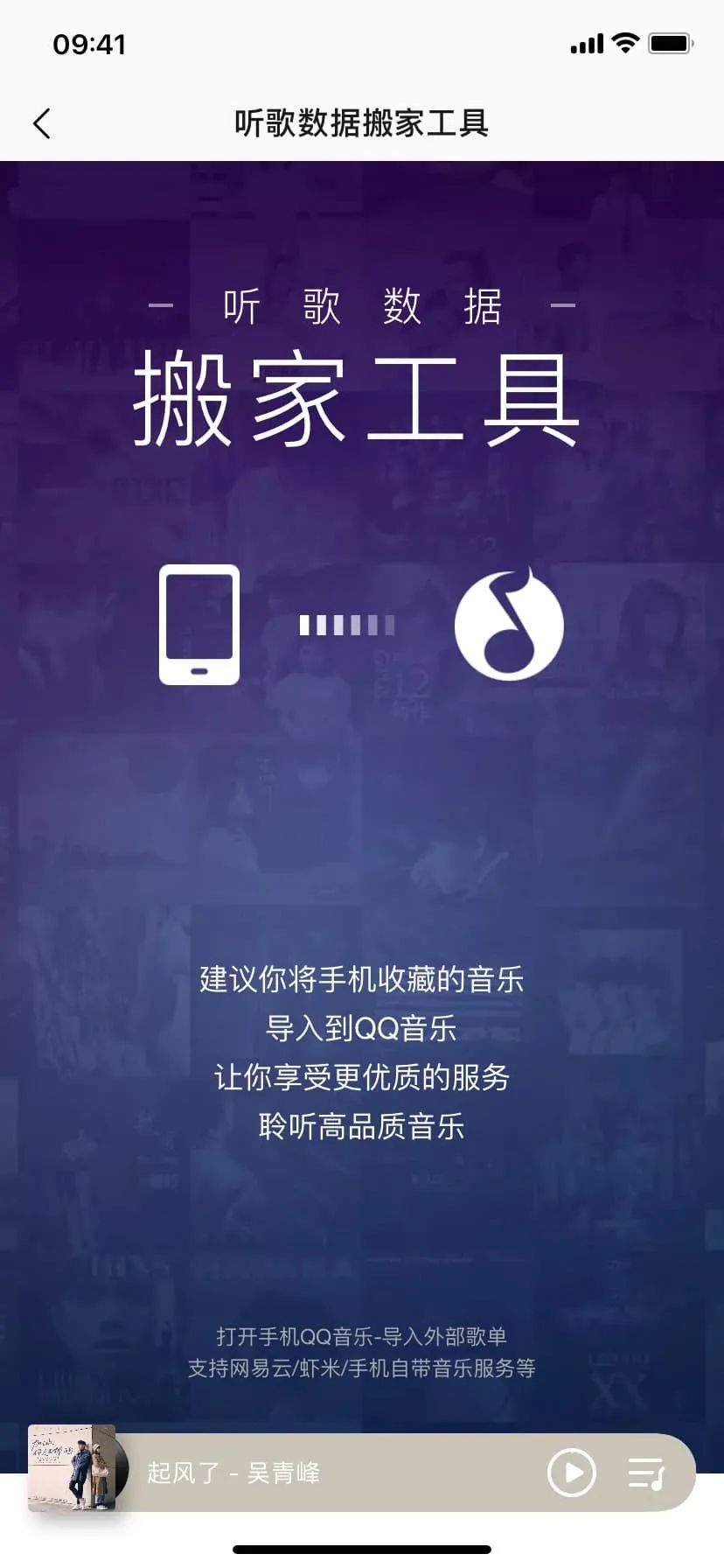 国内平台的歌单导入方式通常为识别歌单链接。你需要在原先的音乐平台将歌单分享为链接或带二维码的音乐卡片形式,随后在新的平台上找到「导入外部歌单」的功能,并粘贴链接 / 扫描二维码即可。