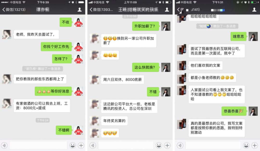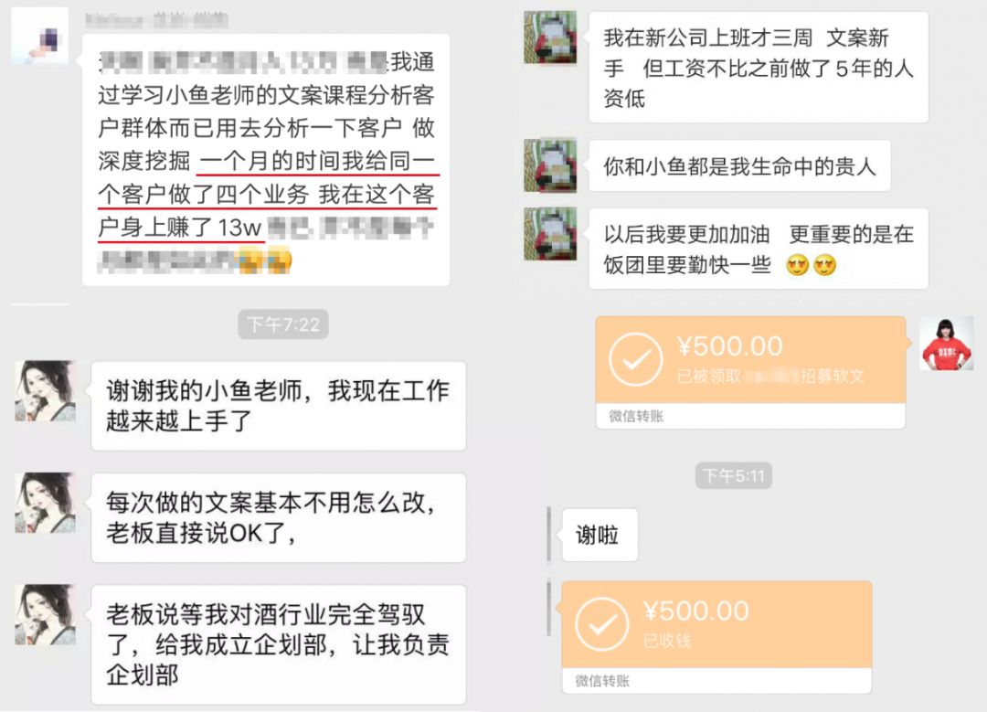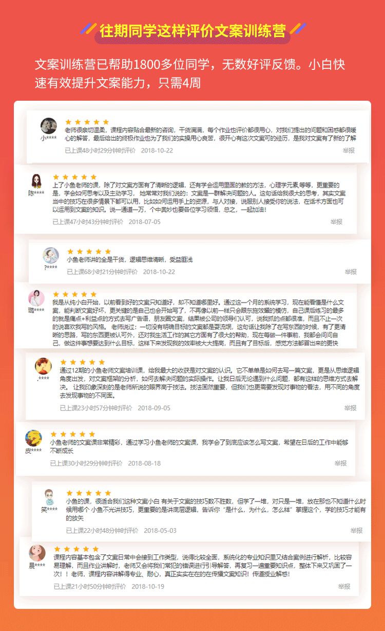 在小鱼老师的指导下,2000多位同学从0到1系统学习文案,通过文案底层逻辑框架和思维,有效提升了底层能力,遇见了更好的自己