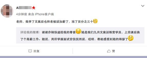 亦桐同学:通过学习文案,老板主动为她升职加薪