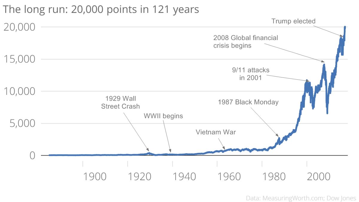 道琼斯工业平均指数(反映证券交易所 30 家最大公司的市场指数)很简单地说明了这一点: