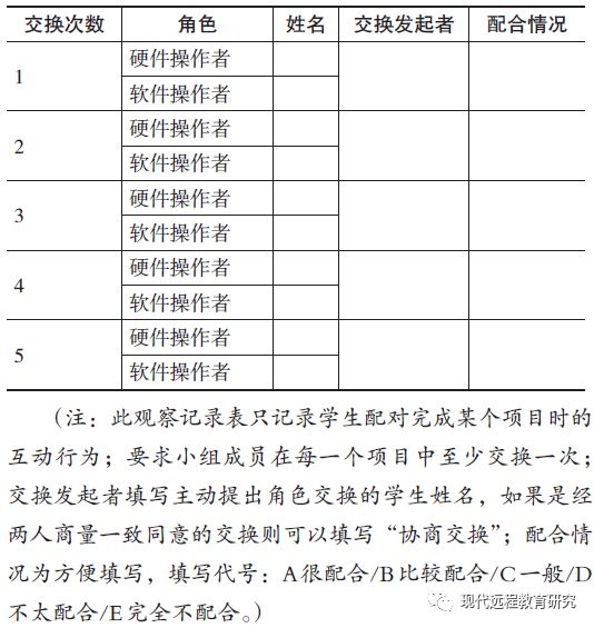 为了培养学生的配对学习习惯,并及时记录学生的配对学习行为,我们设计了配对学习手册,内容包括配对学习介绍、角色的分配准则、交换准则,以及配对学习角色交换记录表(见表3)。教师会在每节课上课之前将配对学习手册发放给每组学生,每节课结束后收回,要求学生认真填写角色交换记录表,教师在每次课后仔细检查手册。
