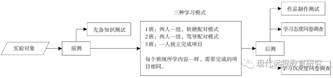 实验过程中,3个班级分别以不同的学习模式进行机器人课程的学习: