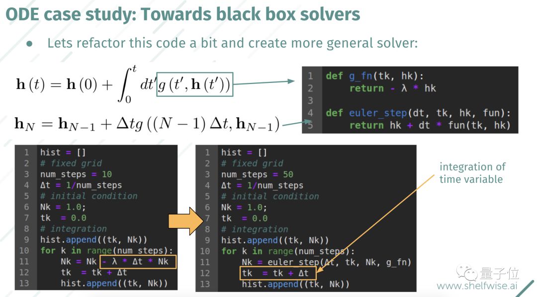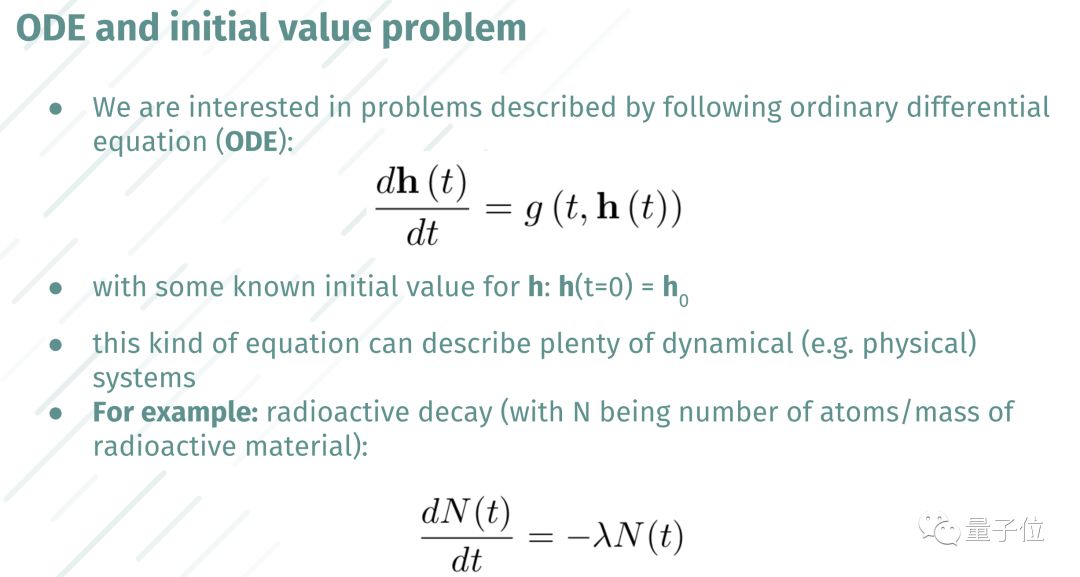 在PPT和Jupyter Notebook中,小哥先解释了什么是ODE。ODE通常被用来描述很多动力系统,比如放射性衰变问题。