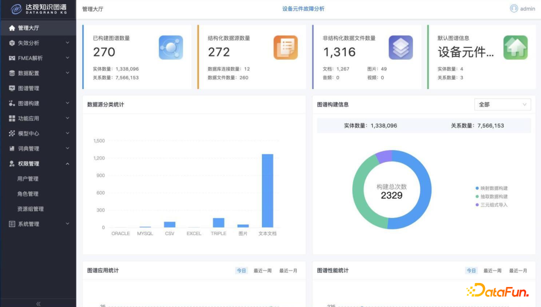 支持按图谱进行数据源、功能、算法、模型和权限管理等。