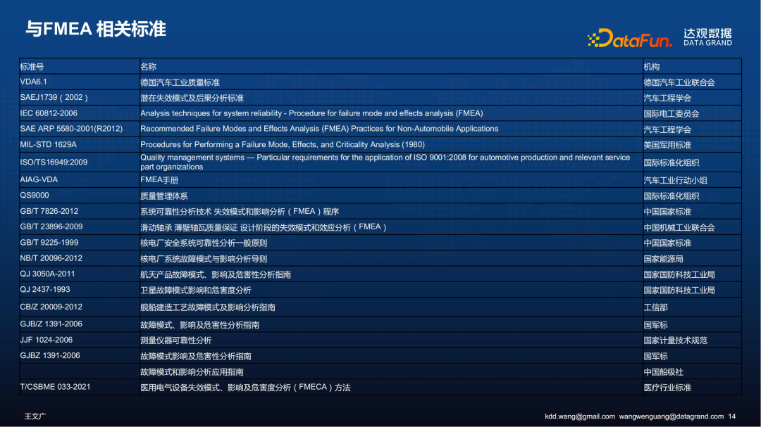 FMEA相关模式和实现方式千千万万,为保证FMEA的有效实现,汽车、航空航天、核电、轴承制造等多个行业均制定了相关的标准和规范。下图粗略整理了常见行业的FMEA标准。
