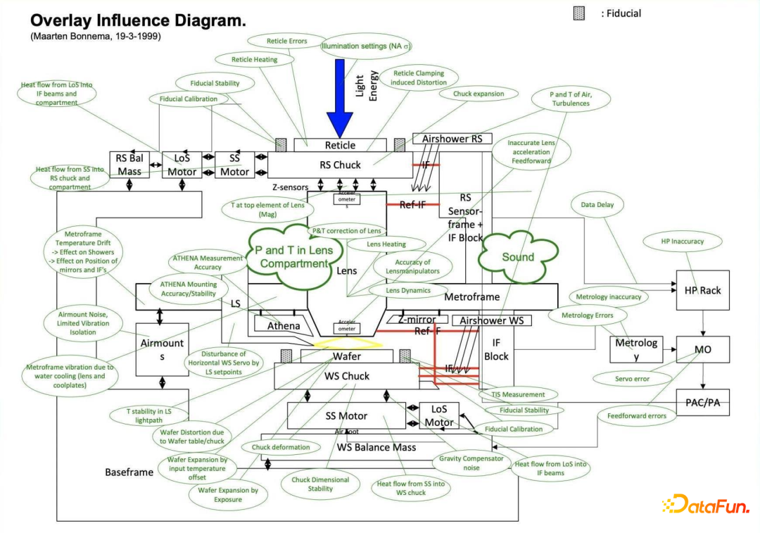 上图展示了1999年之前ASML精度为180µm的光刻机的制造工序图,可以看出工序已经如蜘蛛网般复杂(近期台积精度光刻机的精度可达5nm,制造工序会复杂数倍)。保证所有的工序都要达到足够高的准确度,这样才能保证最终产品的良率,复杂的工序会导致误差的指数级增长(指数魔力或指数诅咒)。