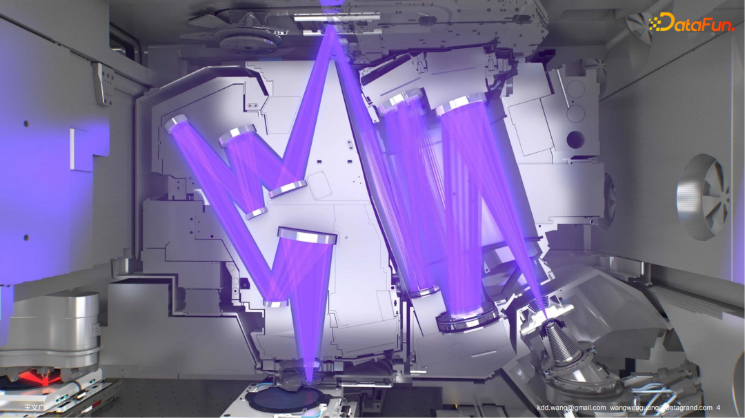 上图展示了来自于ASML公司的一种产品的说明图:光束通过多层反射,最终精确地将图像印制到指定的硅片上,完成光刻。对于其精度要求之高,可以用一个形象的例子类比——假如从上海发射一束光到南京指定的某个点,光束的误差要控制在1cm以内。