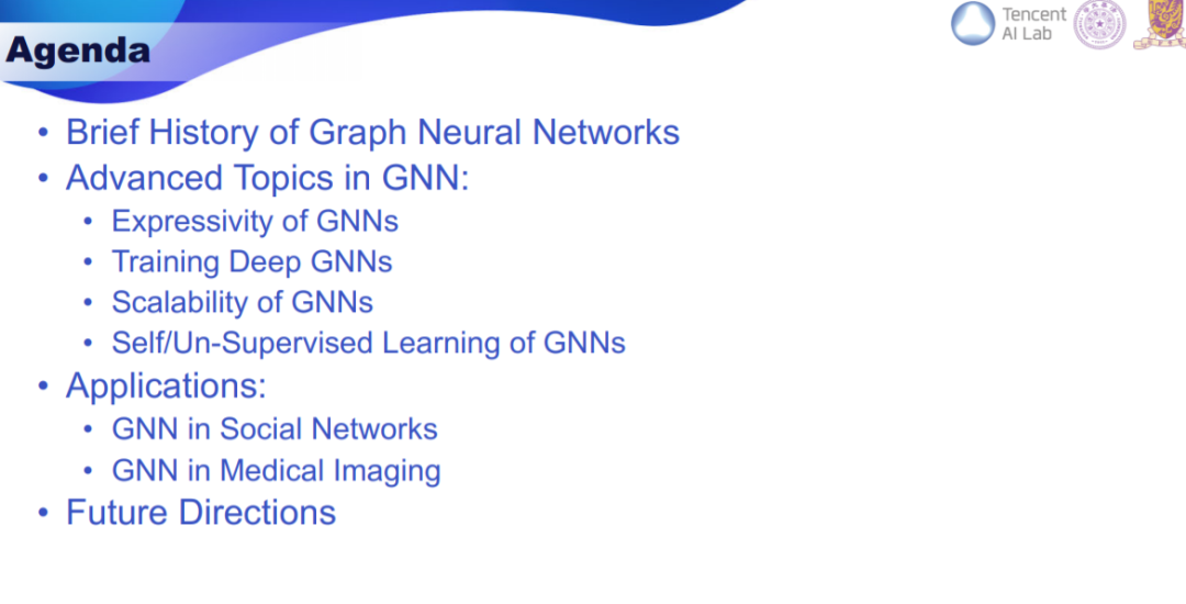在本教程中,我们的目的是提供一个深入的图学习的全面介绍。首先介绍了深度图学习的理论基础,重点描述了各种图神经网络模型(GNNs)。然后介绍DGL近年来的主要成就。具体来说,我们讨论了四个主题:1)深度GNN的训练; 2) GNNs的鲁棒性; 3) GNN的可扩展性; 4) GNN的自监督和无监督学习。最后,我们将介绍DGL在各个领域的应用,包括但不限于药物发现、计算机视觉、医学图像分析、社会网络分析、自然语言处理和推荐。