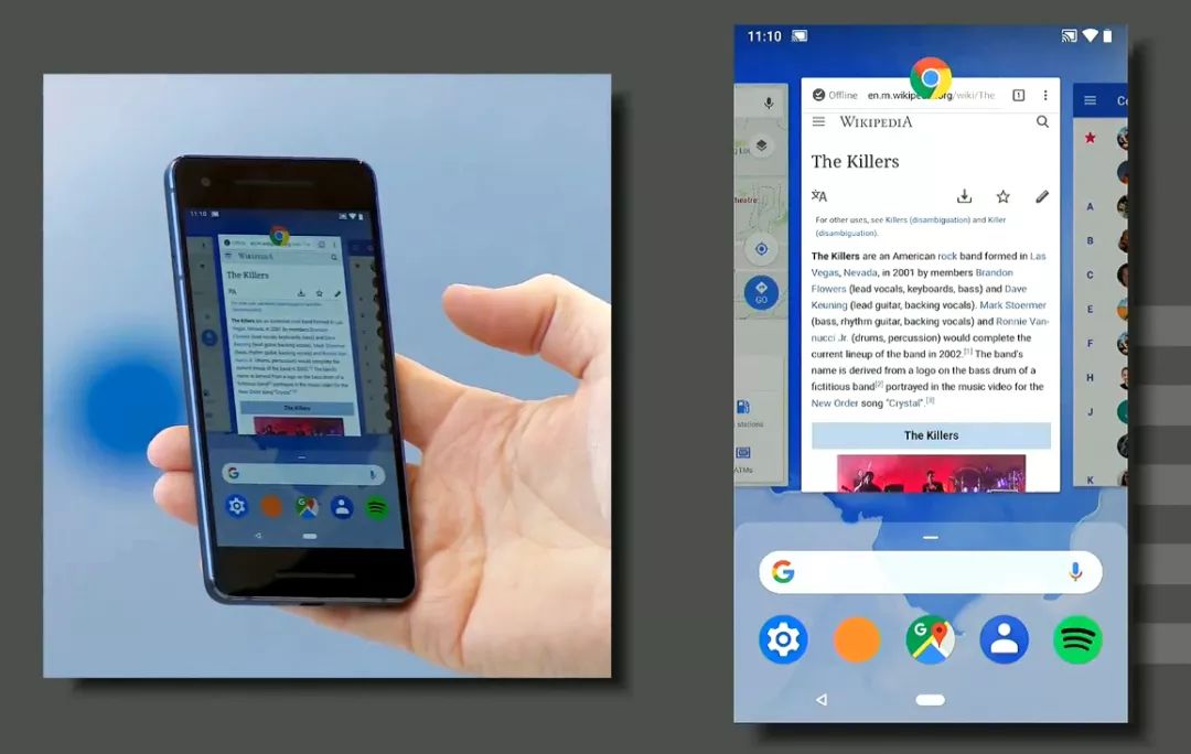 还有一个新手势叫做 Quick Scrub,可以通过手势快速在最近打开的应用程序之间进行切换,只要按住“小胶囊”向左或向右滑动即可自动切换,这个与 iPhone X 按住“小滑块”或“小横条”的操作完全一样,谷歌也认为这是快速切换应用的最佳解决方案。